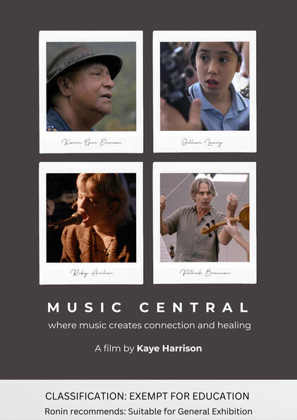 MUSIC CENTRAL explores the power of music to create connection and healing. Filmed for over a year on the Central Coast of New South Wales, this documentary follows the stories of local Elder Uncle Kevin 'Gavi' Duncan, the staff and students at Woy Woy Public School, young singer-songwriter Ruby Archer and the Artistic Director of the Central Coast Conservatorium of Music, Patrick Brennan.