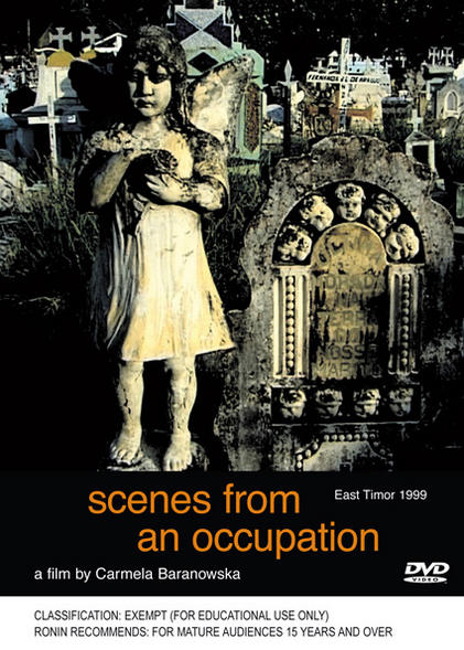 "They killed a child. The adults came out of their houses and said, 'kill us, not innocent children'. They came out, praying and shouting. That's when they machine gunned the adults." "We may all die," says an East Timorese woman, "but if one is left, he will tell the story." Carmela Baranowska is the only filmmaker to have documented this period. She first travelled to East Timor in March 1999, working as a one person crew and stayed on until the UN evacuated its compound in September 1999. SCENES FROM AN OCCUPATION is filmed from the point of view of the East Timorese who were directly affected by the events unfolding rapidly around them. The footage includes eyewitness accounts of the role the Indonesian military played in a systematic campaign of destruction, murder and terror. This film is a testament to the East Timorese people's courage, humour, strength and determination in struggling for their independence. |